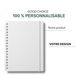 Cahier Cagliari : élégance et personnalisation au service de vos idées. Doté d'une couverture rigide en cuir PU premium et de 80 feuilles en papier offset 80 g/m², ce carnet au format A5 (130x211mm) allie durabilité et raffinement. Personnalisez votre couverture avec votre logo en relief ou impression numérique, puis choisissez la teinte de vos feuilles avec lignes assorties ou design quadri sur mesure. Possibilité d'ajouter des feuilles supplémentaires en début de cahier pour adapter le produit à vos besoins spécifiques.