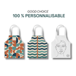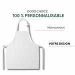 Tablier en coton 230 g/m² aux dimensions généreuses (65 x 90 cm). Choisissez parmi les teintes standard ou définissez votre propre couleur PMS pour le tablier et les bretelles. Personnalisez-le avec votre logo en impression ou broderie, ou optez pour des motifs bord à bord. Bretelles ajustables et ceinture ergonomique pour un confort optimal.