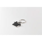 Porte-clés en métal en forme de maison avec incrustation en cuir PU recyclé.
