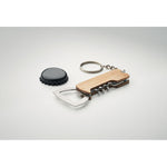 Pochette à outils 3 en 1 avec étui en bambou et porte-clés. Comprend un décapsuleur, un tire-bouchon et un couteau de poche.